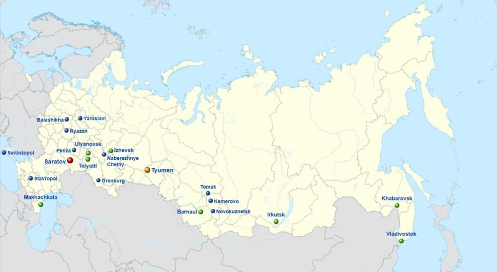 Gần nhất với mốc một triệu dân là Saratov và Tyumen (theo chính quyền địa phương, điều này có thể đạt được vào năm 2029)[6]